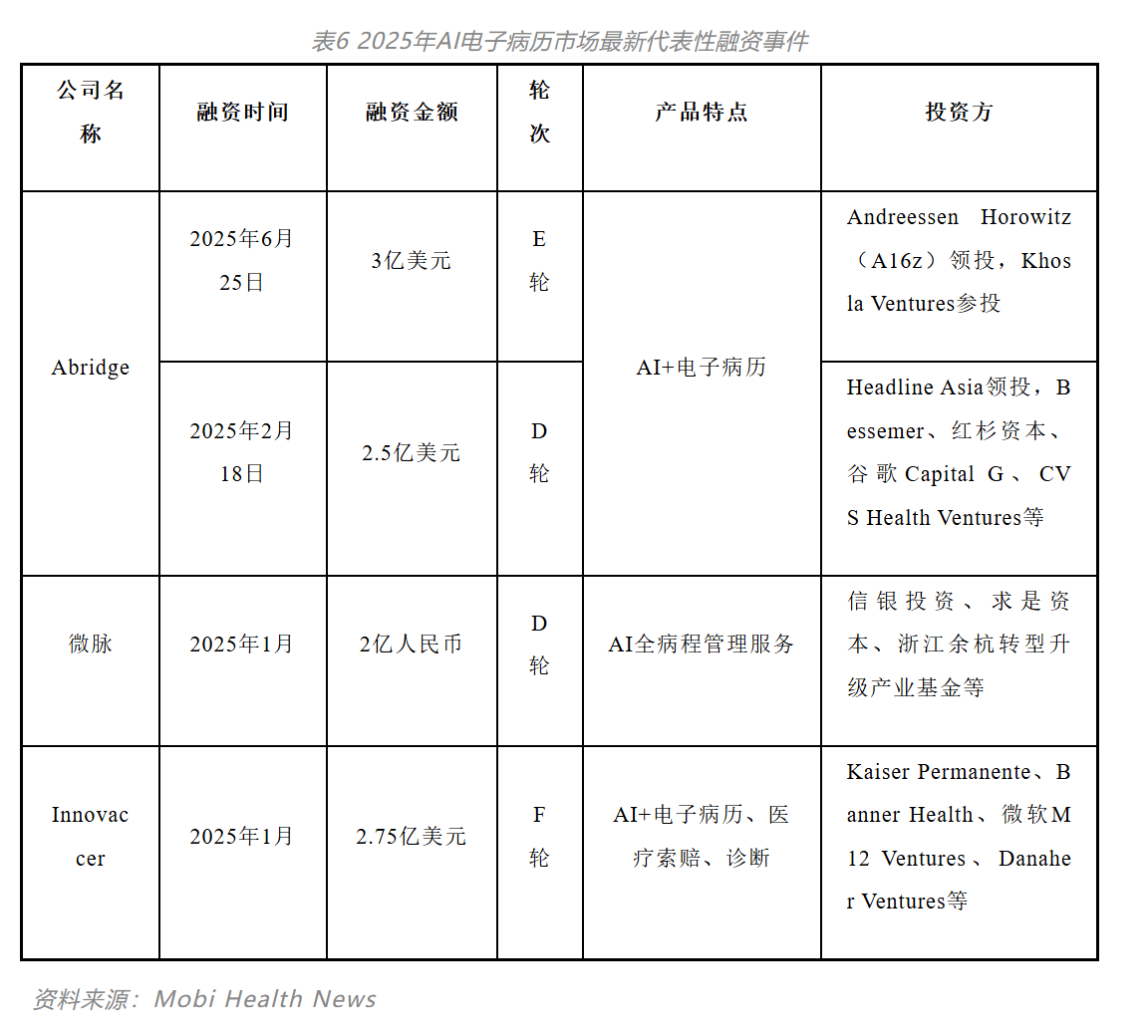 这种轮次分布环境反映AI手艺正在医疗消息化范畴的潜正在价值被本钱所承认,AI电子病历系统是基于人工智能手艺建立和使用的一种电子医疗消息办理系统。