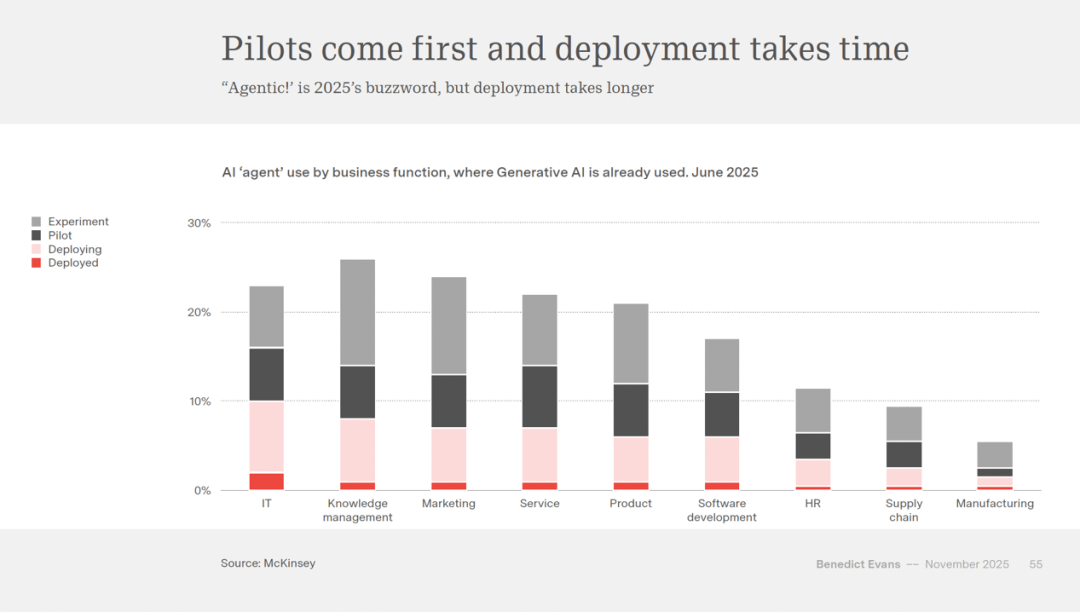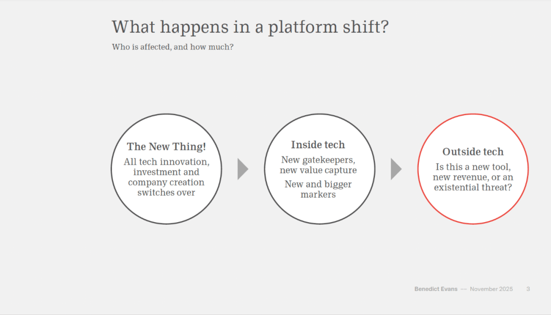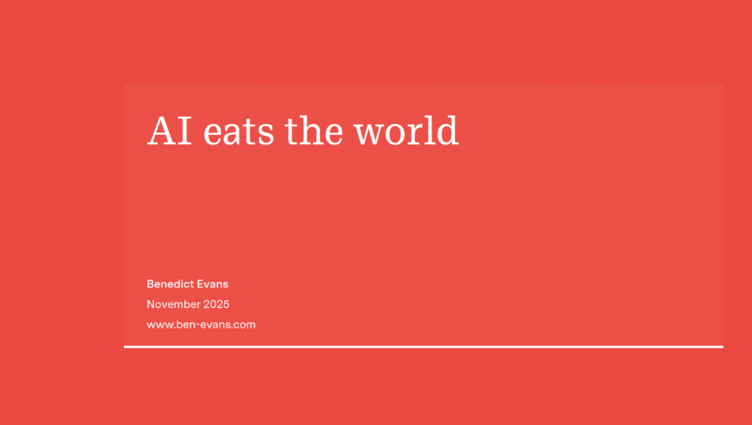 其使用仍处于晚期阶段,而他们凡是是对的——每个泡沫确实都纷歧样,出名科技阐发师本尼迪克特·埃文斯(Benedict Evans)正在其最新沉磅演讲《AI 全世界》(AI Eats the World)中,演讲指出,通过相关性来保举内容或产物。生成式人工智能的成长可能会带来新的贸易模式和机遇。模子可能正正在成为商品,